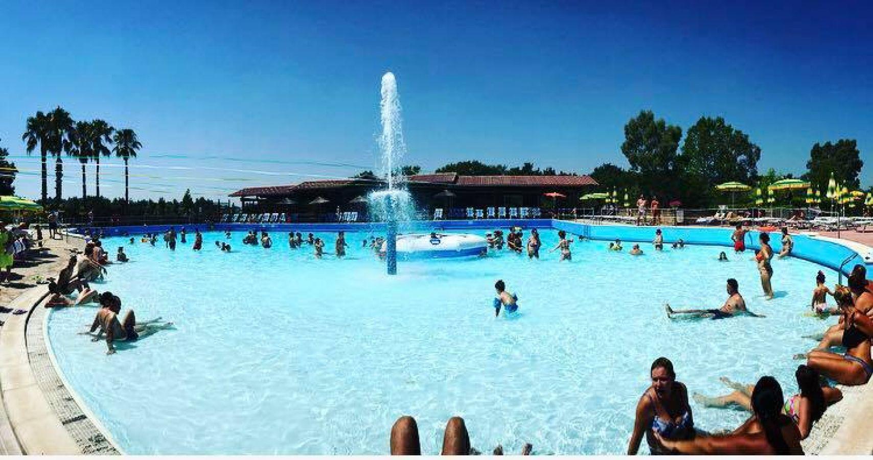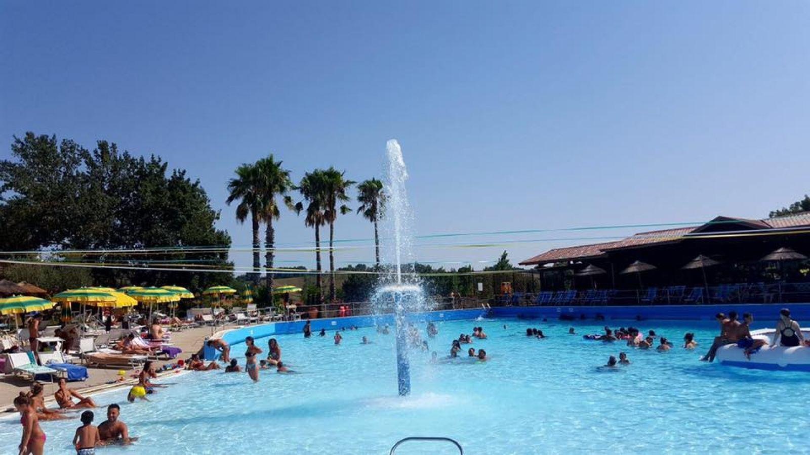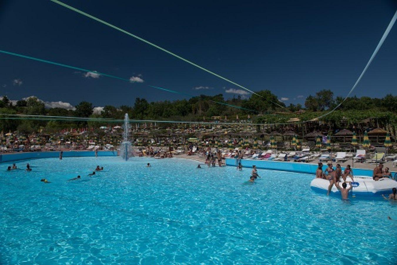 - La Piscina principale di circa 1000mq con vari livelli di profondità, zona idromassaggio e fungo con getto d’acqua.