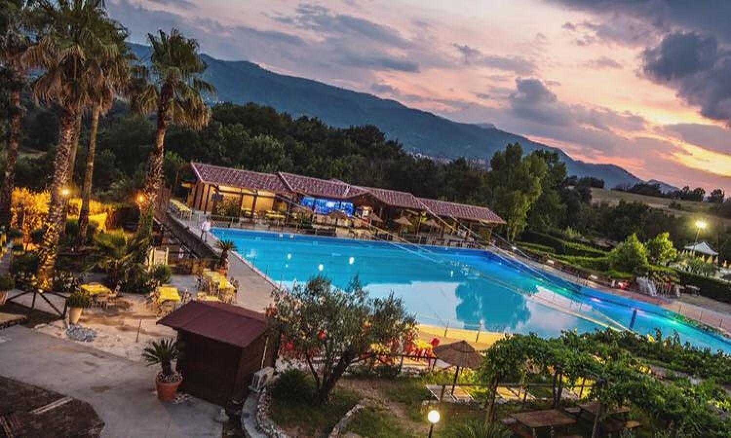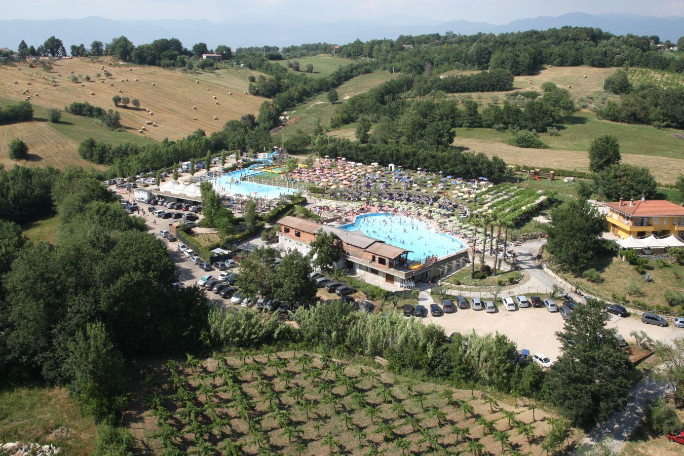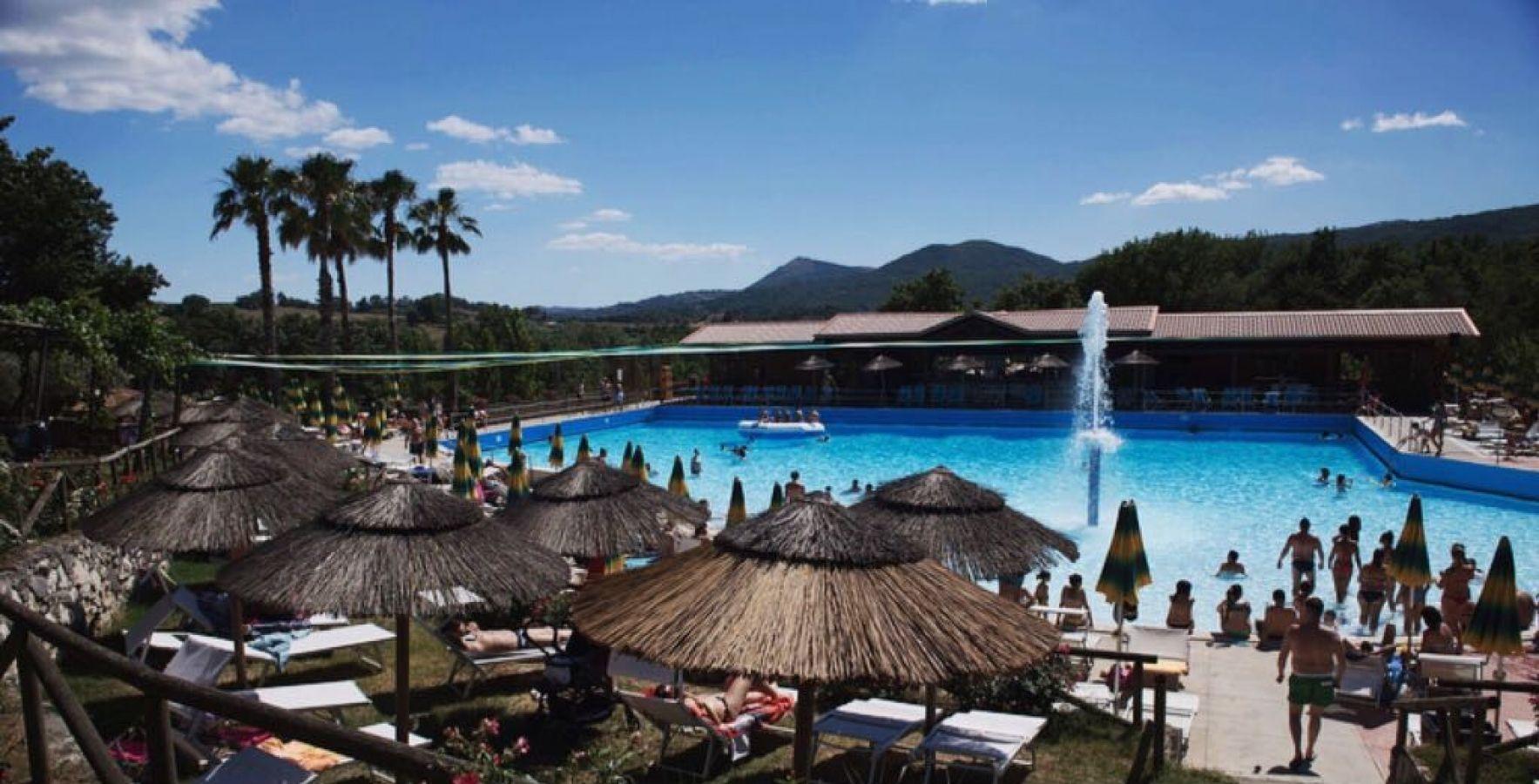 - La Piscina principale di circa 1000mq con vari livelli di profondità, zona idromassaggio e fungo con getto d’acqua.